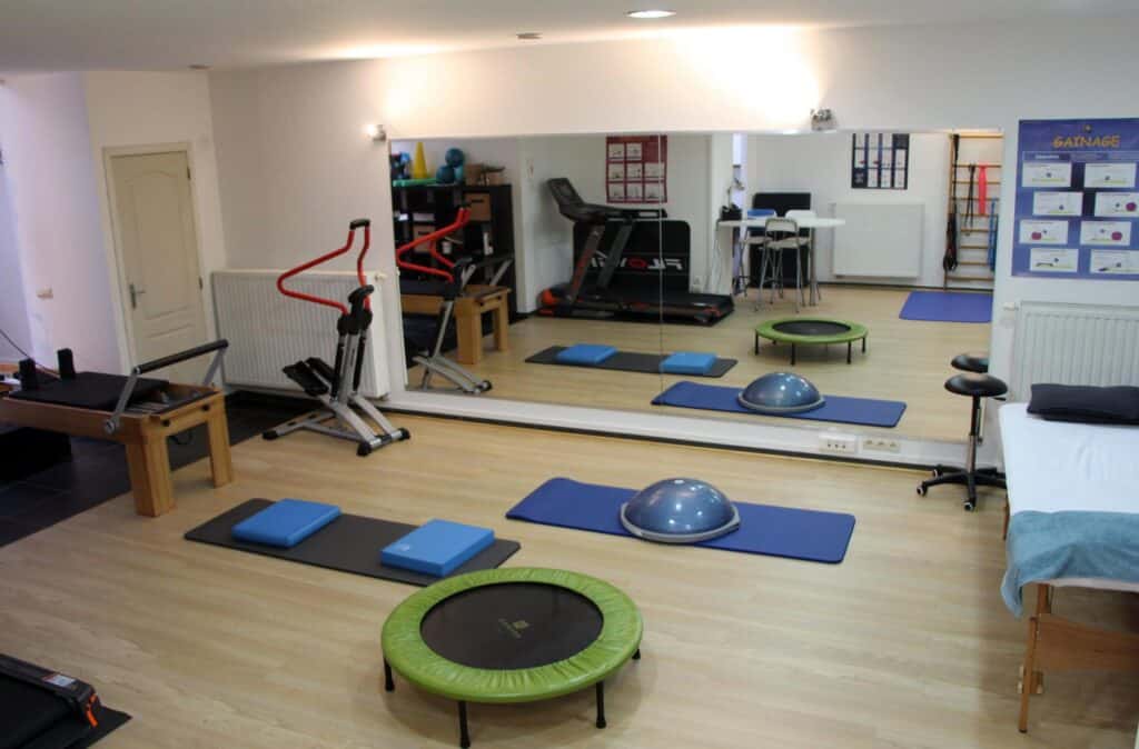 Le cabinet est composé de 3 salles individuelles ainsi qu’un plateau technique. Celui-ci dispose de matériel nécessaire aux exercices proprioceptifs: bosu, trampoline, airex, swiss-ball…